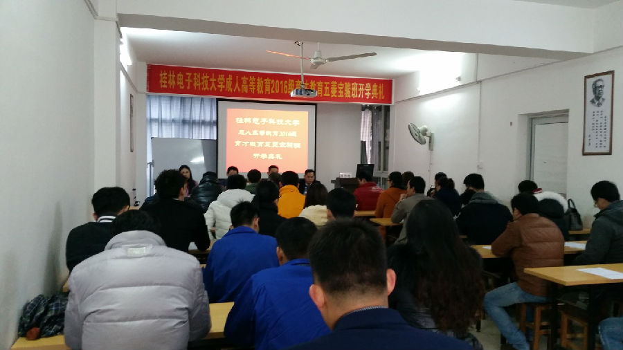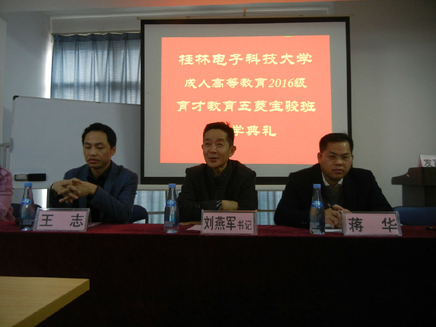 2015年12月25日,桂林電子科技大學成人高等教育2016級育才教育五菱寶駿班新生開學典禮在柳州市東環(huán)路69號育才總部水晶印象大廈513多媒體教室隆重舉行,桂林電子科技大學成教院劉燕軍書記出席了典禮并作了重要講話。