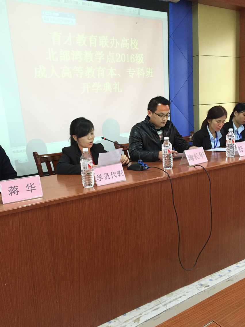 1月16日上午,育才教育北部灣分校2016級成人高等教育新生開學(xué)典禮在育才北部灣分校隆重舉行。廣西育才教育集團董事長蔣華老師出席了開學(xué)典禮并作了重要講話。來自欽州及各縣200多名成人函授本、??菩律鷧⒓恿碎_學(xué)典禮。