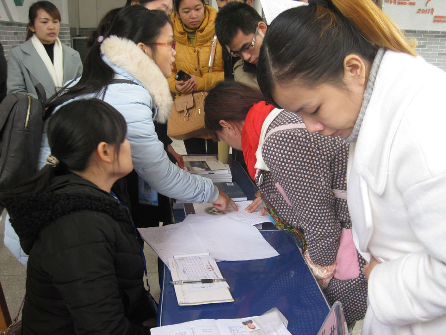 開學典禮后,同學進行報到注冊