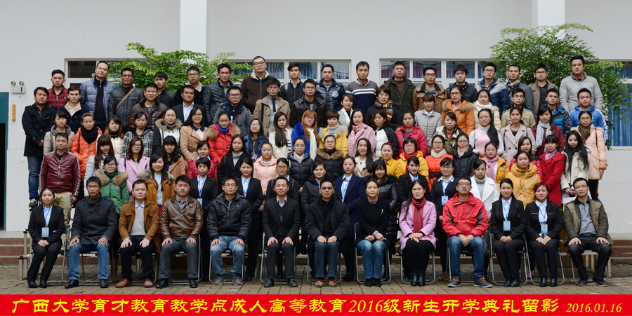 “我向成人高等教育2016級新生表示誠摯的歡迎!你們所選擇的廣西大學,是廣西唯一的國家“211工程”建設高校,是我國重點建設的100所大學之一,是一所有著八十多年辦學歷史的大學,她有著輝煌燦爛的過去、激動人心的今天和充滿希望的未來。廣西大學不會使你們失望,相信你們也不會讓廣西大學失望!”,陳海副院長在典禮上給同學們詳細介紹了廣西大學的情況,并向同學們提出了三點希望:一是要樹立終身學習的理念,學會自主學習;二是要有堅持不懈的恒心,學會排除萬難;三是要積極參加社會實踐,提高綜合素養(yǎng)?!巴瑢W們,美麗的西大張開雙臂歡迎各位新同學,相信你們一定會秉承“勤懇樸誠、厚學致新”的校訓,胸懷祖國,勇于擔當,要勤學奮進,銳意創(chuàng)新,追求卓越,虛心從善,樹德修身。希望同學們牢記自己的歷史使命,努力學習,奮發(fā)向上,把自己塑造成適應時代發(fā)展需要的優(yōu)秀人才,共同書寫人生的新篇章,書寫廣西大學的新篇章,向家人、向母校、向社會交上滿意的答卷,為民族的振興、國家的發(fā)展作出應有的貢獻?!标惡8痹洪L的話令同學們深受鼓舞,受益匪淺。
