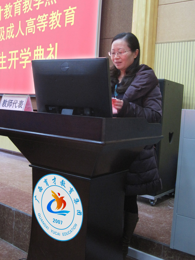 教師代表文玉萍老師表示教師發(fā)言,表示在今后的教學活動中,將按照桂林醫(yī)學院的教學要求,按時按質按量的完成教學任務。同時要求同學們統籌兼顧,合理安排學習時間,正確處理好工作和學習矛盾。