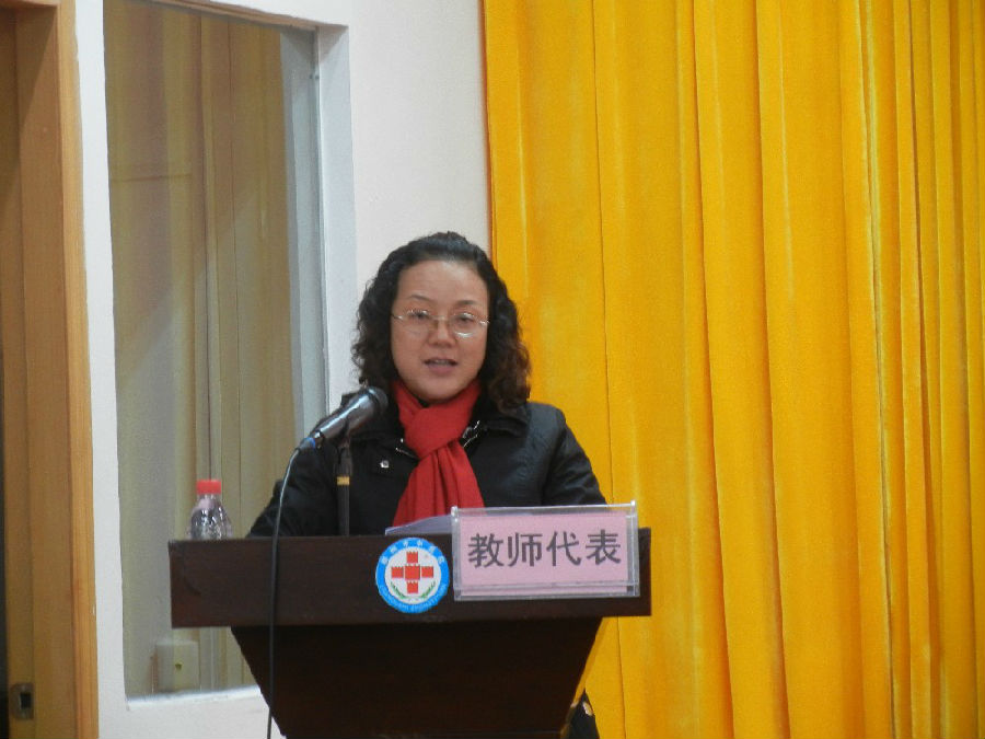 教師代表劉珍蓮代表全體教職工表示將本著“傳道授業(yè)解惑”的宗旨,不斷提高業(yè)務(wù)素質(zhì),認(rèn)真教學(xué),勤奮工作,幫助新同學(xué)們?cè)缛粘砷L(zhǎng)成才;