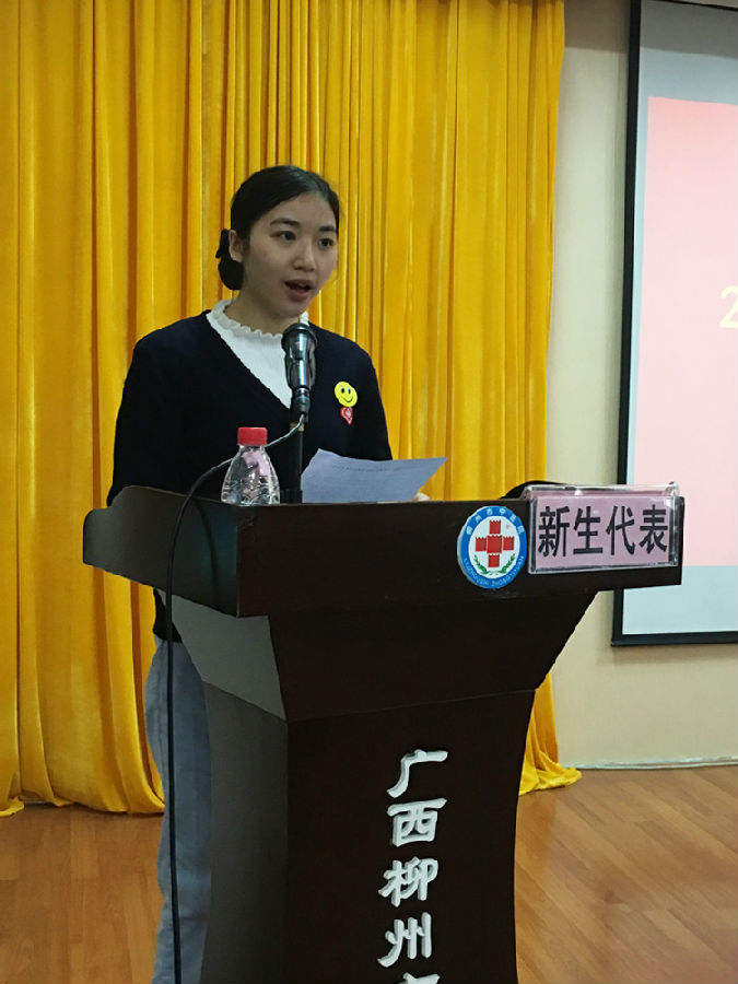 新生代表護(hù)理學(xué)專業(yè)吳蘭婷同學(xué)提醒新生們要盡快轉(zhuǎn)變角色,處理好工學(xué)矛盾。暢談了對(duì)大學(xué)的憧憬與夢(mèng)想,并代表全體新生表達(dá)了對(duì)中醫(yī)大老師們的感謝。