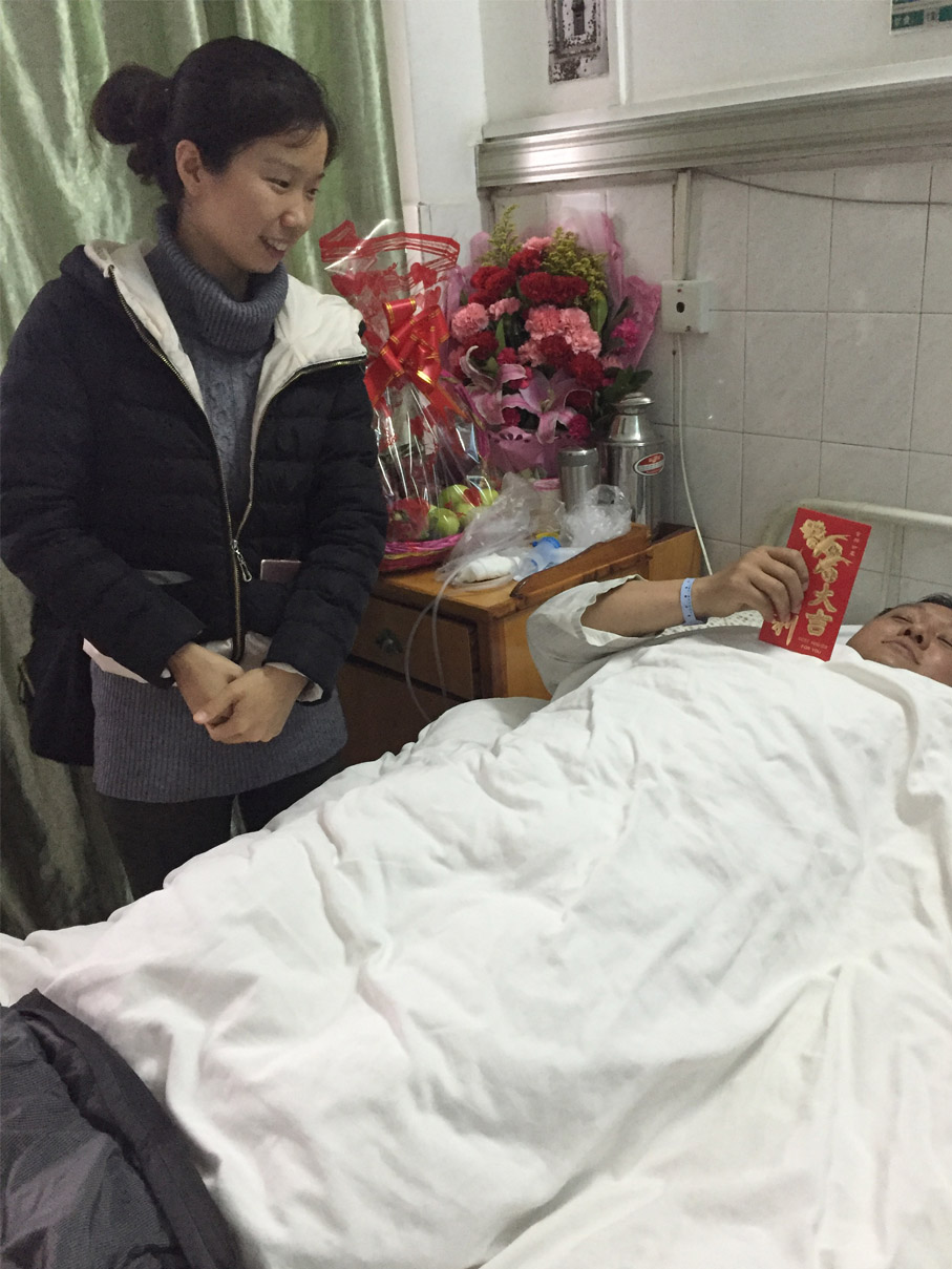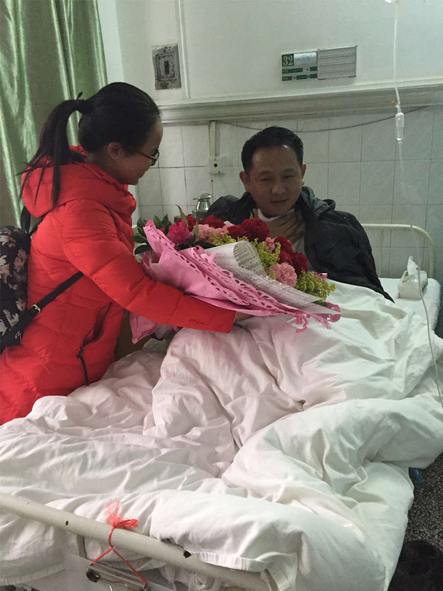近日,廣西育才教育集團(tuán)工會(huì)來到廣西科技大學(xué)第二附屬醫(yī)院看望了生病住院的職工蔣水榮同志,把鮮花和慰問金送到職工手中,同時(shí)也送去關(guān)懷和溫暖,鼓勵(lì)蔣水榮同志樹立信心,勇敢戰(zhàn)勝病魔,爭(zhēng)取早日康復(fù)。廣西育才教育工會(huì)成立以來,堅(jiān)持以人為本,為職工排憂解難,解除職工的后顧之憂,使每位職工都能真切體會(huì)到公司的關(guān)愛。