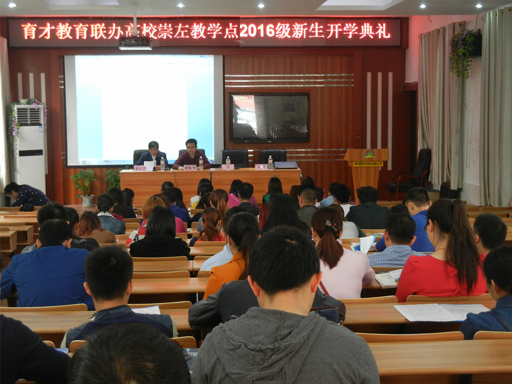 3月20日上午,育才崇左市分校隆重舉行育才聯(lián)辦高校崇左教學點非醫(yī)學類2016級成人高等教育新生開學典禮。廣西育才教育集團負責人和育才崇左市分校領導唐雄華校長、梁啟學副校長、吳玲主任、黃曼老師、黃文老師出席。來自崇左市區(qū)和各縣的80多名成人函授本、專科新生參加了開學典禮。唐雄華校長做入學教育工作,梁啟學副校長主持開學典禮。