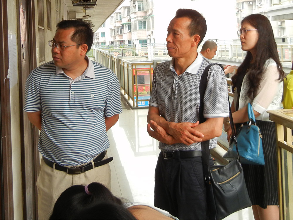 蘇兆成院長認真審閱育才的辦學(xué)管理資料育才教育李彩梅副校長介紹育才的教學(xué)管理情況