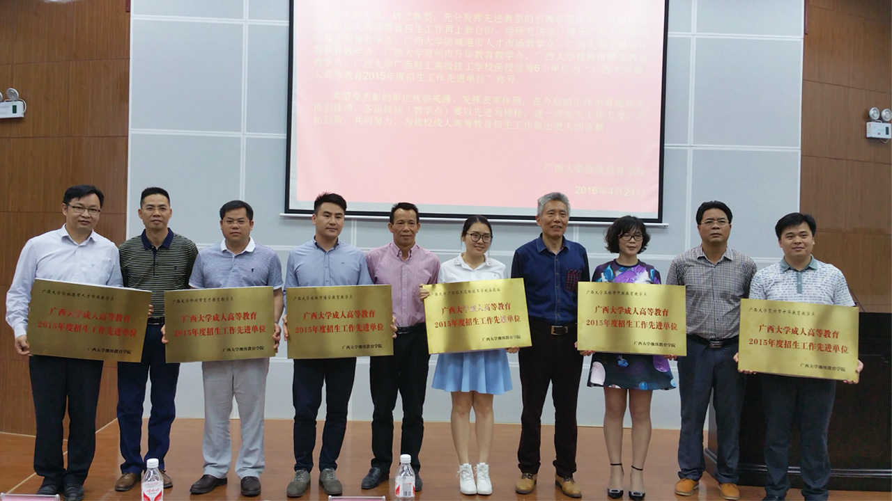育才教育榮獲廣西大學(xué)成人高等教育2015年度招生工作先進(jìn)單位