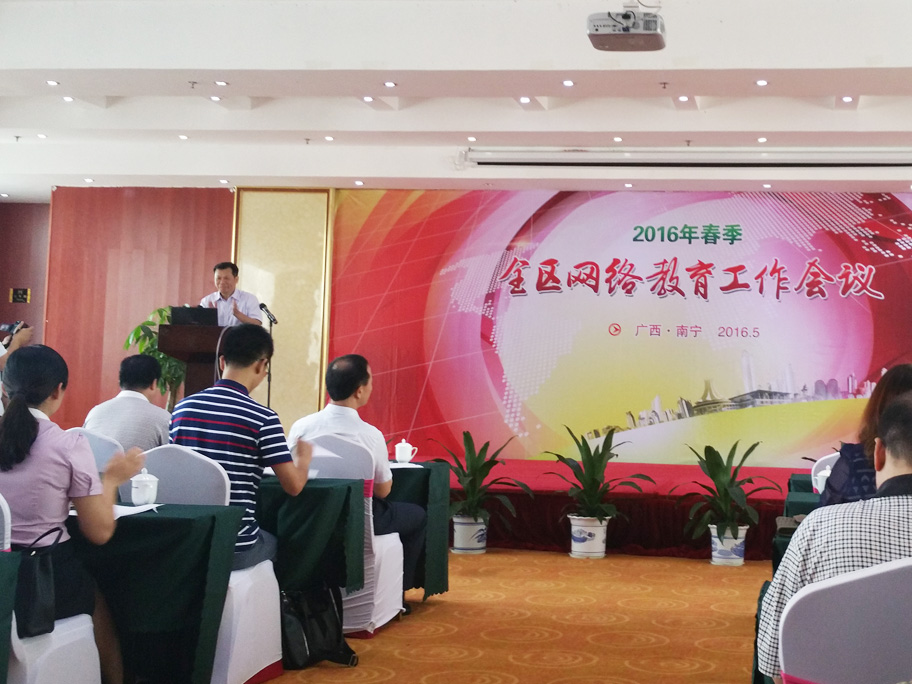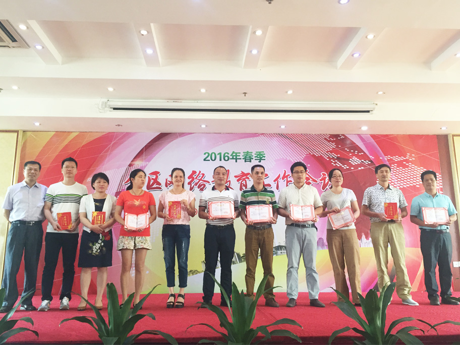 會(huì)議內(nèi)容主要有:一是廣西電大副校長(zhǎng)楊雄致辭。二是由網(wǎng)絡(luò)學(xué)院副院長(zhǎng)唐建軍作了2016年春季網(wǎng)絡(luò)教育招生工作總結(jié)并布置2016秋季招生工作,2016春季網(wǎng)絡(luò)教育招生人數(shù)再創(chuàng)佳績(jī),突破了8000人。三是由網(wǎng)絡(luò)學(xué)院院長(zhǎng)陶群宣讀表彰文件。本次頒獎(jiǎng)由教育廳下屬單位廣西遠(yuǎn)程教育服務(wù)中心頒發(fā),規(guī)格很高。