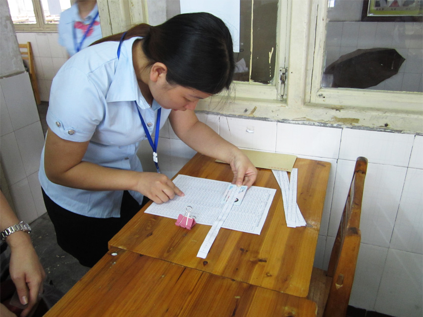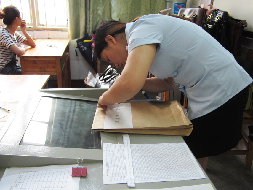 監(jiān)考老師在認(rèn)真核對考生的信息