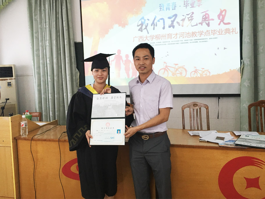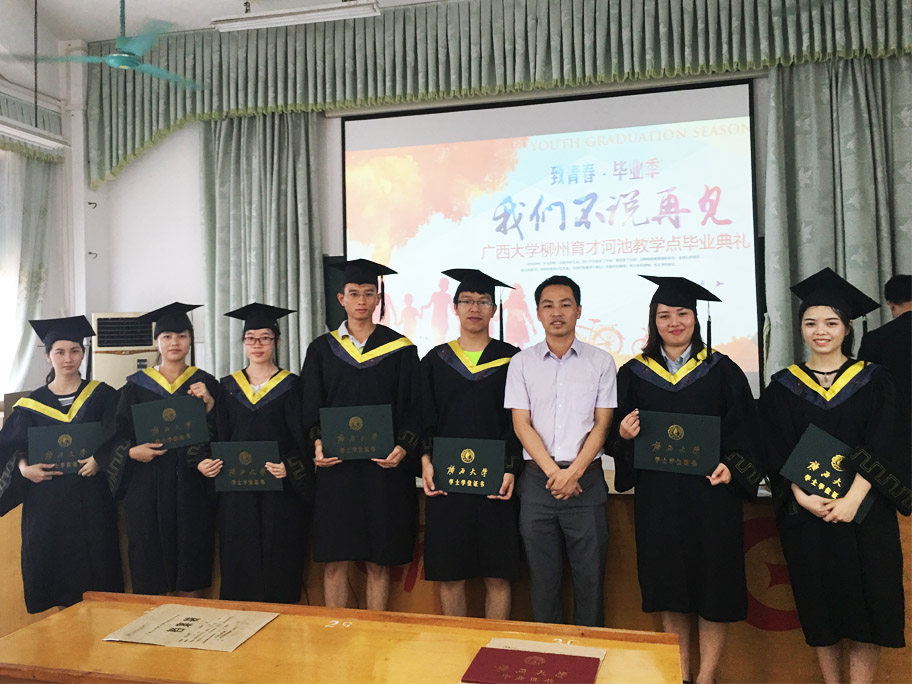 7月10日上午,廣西大學(xué)育才教育河池教學(xué)點(diǎn)2016屆成人高等教育本??飘厴I(yè)典禮在育才河池分校隆重舉行。育才教育王志校長(zhǎng)、李彩梅副校長(zhǎng)、韋秋燕主任、河池分校梁森琰老師、周嘉慧老師出席典禮,來(lái)自河池市各區(qū)、縣的30多名畢業(yè)生代表參加了畢業(yè)典禮。畢業(yè)典禮由王志校長(zhǎng)主持。