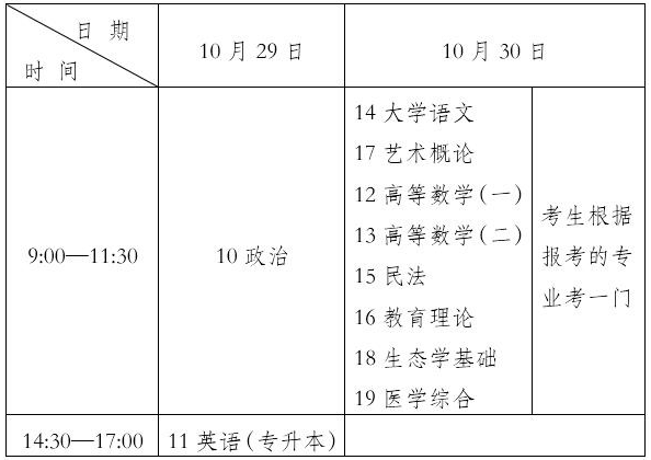 (二)專(zhuān)升本考試時(shí)間表