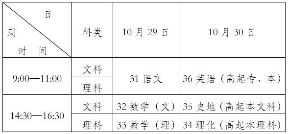 (一)高起本、高起專(zhuān)考試時(shí)間表