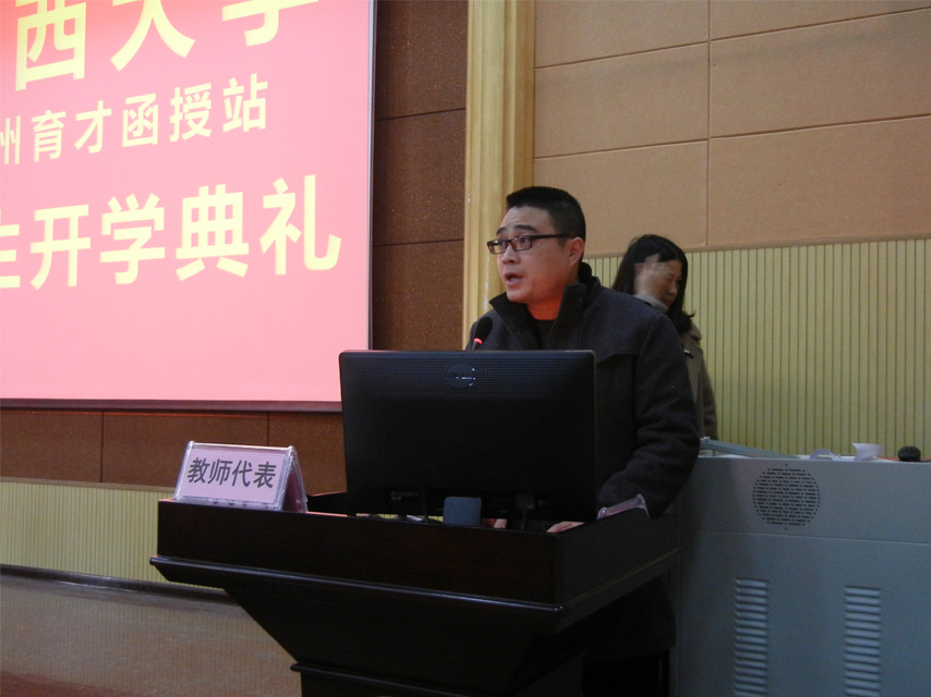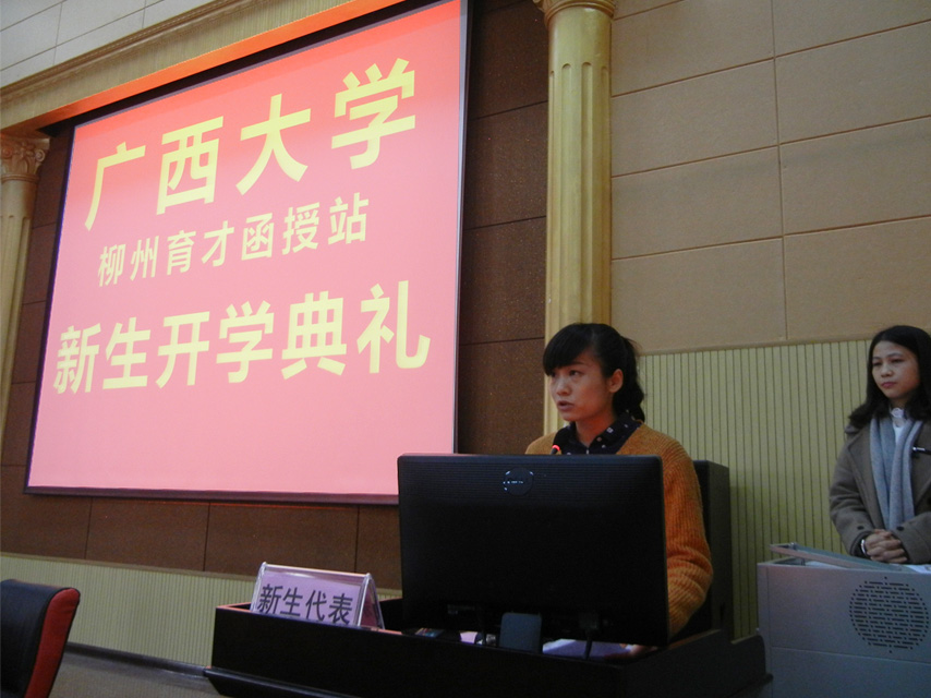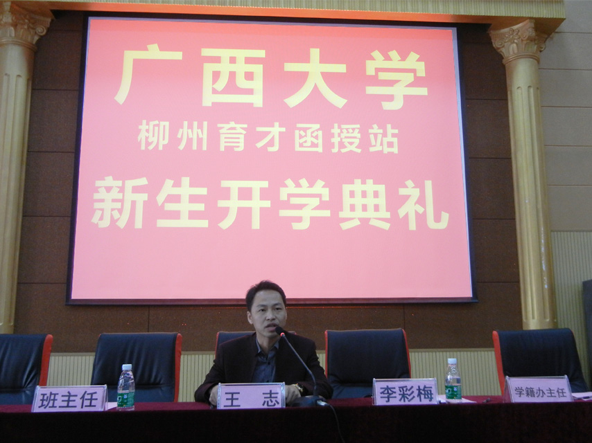 廣西大學(xué)柳州育才函授站負(fù)責(zé)人蔣華老師向同學(xué)們介紹了廣西育才教育集團(tuán)的發(fā)展歷史及當(dāng)前的基本情況,目前育才有成人高等教育(函授、業(yè)余)本??瓢?,分為非醫(yī)學(xué)類和醫(yī)學(xué)類兩大塊;二是網(wǎng)絡(luò)教育本??瓢唷OM劳袕V西大學(xué)的優(yōu)勢(shì)教學(xué)資源,進(jìn)一步發(fā)展地方繼續(xù)教育,提升服務(wù)社會(huì)的能力。蔣華老師向新生提出兩點(diǎn)希望:一是希望大家樹立終身學(xué)習(xí)的理念,學(xué)會(huì)自主學(xué)習(xí);二是希望大家明確學(xué)習(xí)目的,端正學(xué)習(xí)態(tài)度。最后祝愿大家都能順利畢業(yè)。
