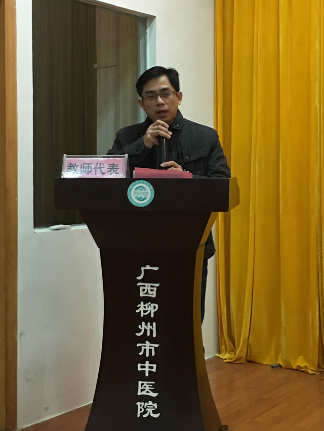 教師代表張安文在發(fā)言中表示將本著“誠信、嚴(yán)謹(jǐn)、敬業(yè)”為準(zhǔn)則,不斷提高業(yè)務(wù)素質(zhì),認(rèn)真教學(xué),勤奮工作,幫助新同學(xué)們早日成長成才;2017級針灸推拿學(xué)本科專業(yè)的譚凱元同學(xué)作為新生代表發(fā)言,他倡議新生在以后的學(xué)習(xí)生活中積極進(jìn)取,努力使自己成為一個合格的中醫(yī)藥學(xué)子,為學(xué)校、為社會作出自己應(yīng)有的貢獻(xiàn)。