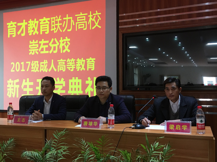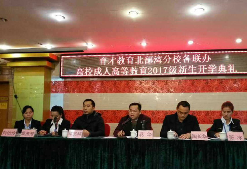 2月25日上午,育才北部灣分校隆重舉行育才聯(lián)辦高校北部灣分校2017級成人高等教育新生開學(xué)典禮,育才教育黨支部書記、集團(tuán)董事長蔣華、育才桂林大區(qū)域總監(jiān)、柳州市育才教育培訓(xùn)中心副校長蔣昊明、育才北部灣區(qū)域總監(jiān)、欽州分校校長陶長華、教學(xué)管理老師黃燕芳、符冰、劉怡伶、北海分校、防城港分校的負(fù)責(zé)老師均出席典禮,來自欽州市區(qū)及各縣的60多名新生代表參加了開學(xué)典禮。開學(xué)典禮由黃燕芳老師主持。