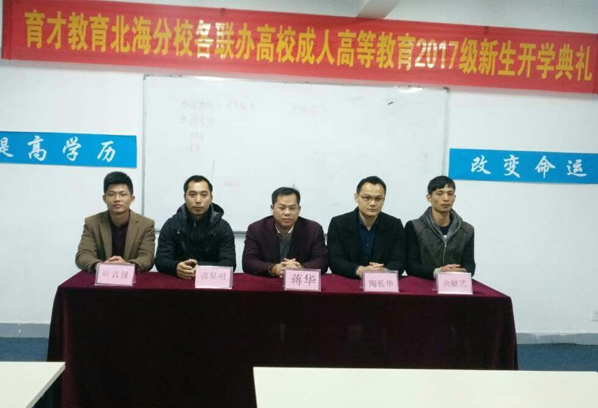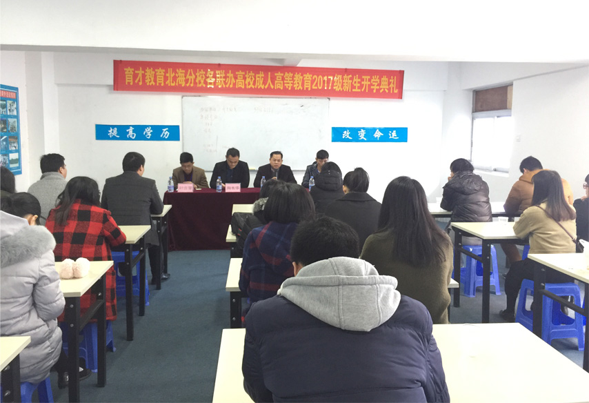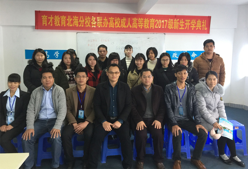 2月26日上午,育才北海市分校隆重舉行育才聯(lián)辦高校北海分校2017級成人高等教育新生開學(xué)典禮,育才教育黨支部書記、集團(tuán)董事長蔣華、育才桂林大區(qū)域總監(jiān)、柳州市育才教育培訓(xùn)中心副校長蔣昊明、育才北部灣區(qū)域總監(jiān)、欽州分校校長陶長華、育才北海分校負(fù)責(zé)人余獻(xiàn)藝、教學(xué)管理老師葉吉智出席典禮,來自北海市區(qū)及各縣的30多名新生代表參加了開學(xué)典禮。開學(xué)典禮由葉吉智老師主持。