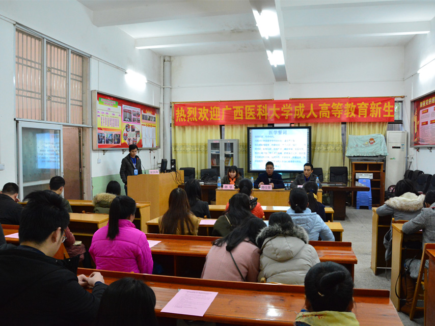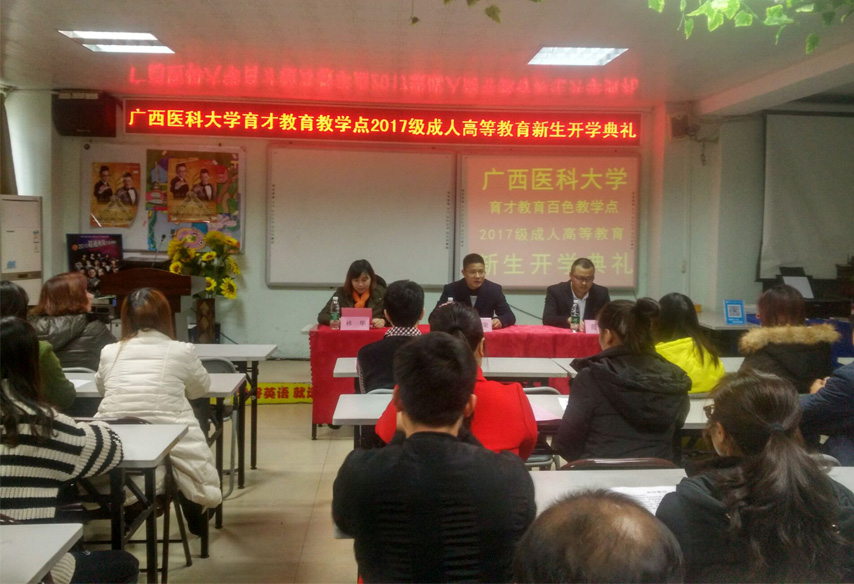 2月26日上午,育才玉林市分校隆重舉行廣西醫(yī)科大學(xué)育才玉林分校2017級成人高等教育新生開學(xué)典禮,集團(tuán)副總、柳州市育才教育培訓(xùn)中心醫(yī)學(xué)部部長蔣仕榮、柳州市育才教育培訓(xùn)中心醫(yī)學(xué)部招生副校長林華、育才玉林市分校負(fù)責(zé)人曾德淵、教學(xué)管理老師莫秀蘭出席典禮,來自玉林市區(qū)及各縣的40多名新生代表參加了開學(xué)典禮。開學(xué)典禮由莫秀蘭老師主持。