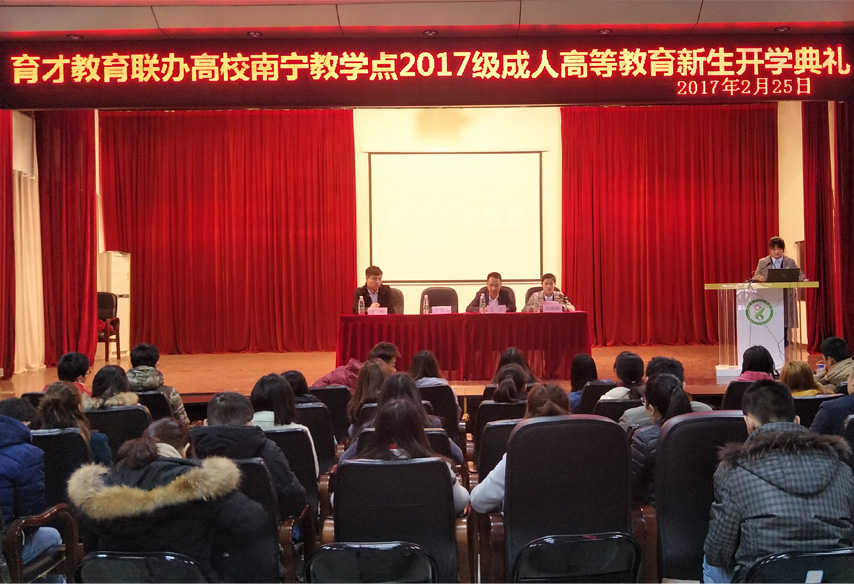 2月25日上午,育才南寧市分校隆重舉行育才聯(lián)辦高校南寧分校2017級成人高等教育新生開學(xué)典禮,集團(tuán)副總、柳州市育才教育培訓(xùn)中心校長王志、育才南寧市分校副校長劉婉麗、副校長校長滕偉、南寧分校教學(xué)管理老師盧華英、劉燕、熊麗君、伍鵬均出席典禮,來自南寧市區(qū)及各縣的50多名新生代表參加了開學(xué)典禮。開學(xué)典禮由熊麗君老師主持。