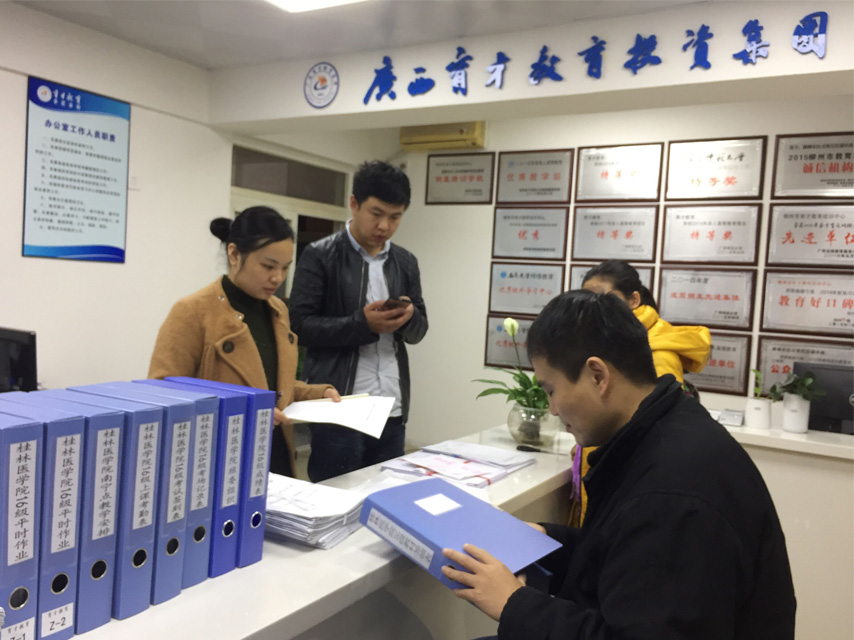 3月16日,桂林醫(yī)學(xué)院繼續(xù)教育學(xué)院主管學(xué)籍與考務(wù)的王欣老師、主管錄取與繳費(fèi)的黃開(kāi)西老師到育才南寧分校檢查指導(dǎo)。
