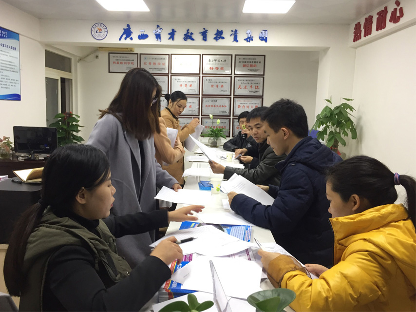檢查組一行首先參觀了育才南寧分校的辦公環(huán)境和教學(xué)設(shè)施設(shè)備,并查閱了有關(guān)學(xué)籍、教務(wù)、考務(wù)等方面的資料,對(duì)育才南寧分校的規(guī)范辦學(xué)表示滿意,隨后對(duì)南寧分校的教學(xué)管理老師進(jìn)行了培訓(xùn),要求教學(xué)點(diǎn)落實(shí)常規(guī)教學(xué)、抓好考務(wù)管理、做好畢業(yè)生的登記和新生繳費(fèi)報(bào)到工作。