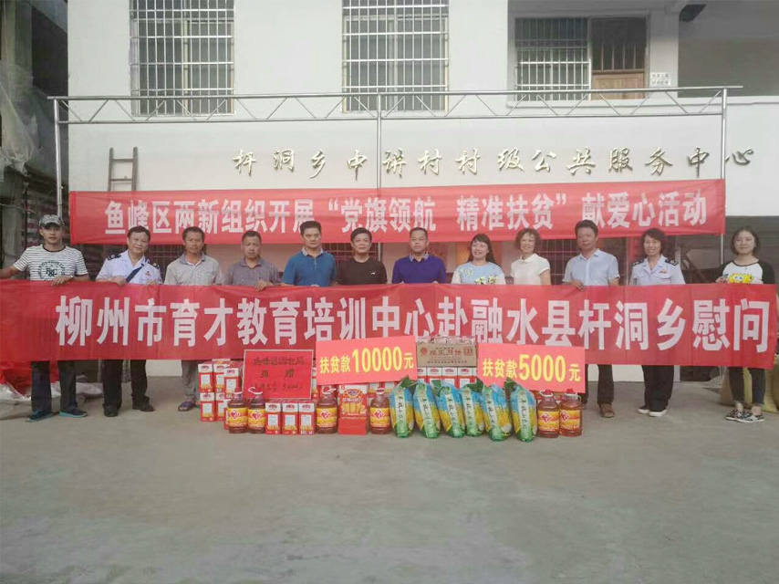 9月20日,魚峰區(qū)兩新組織部、兩新組織黨工委、國稅局以及社會(huì)組織黨支部代表赴融水縣桿洞鄉(xiāng)中講村開展扶貧獻(xiàn)愛心活動(dòng),活動(dòng)當(dāng)天,柳州市育才教育培訓(xùn)中心黨支部現(xiàn)場捐助5000元扶貧資金。