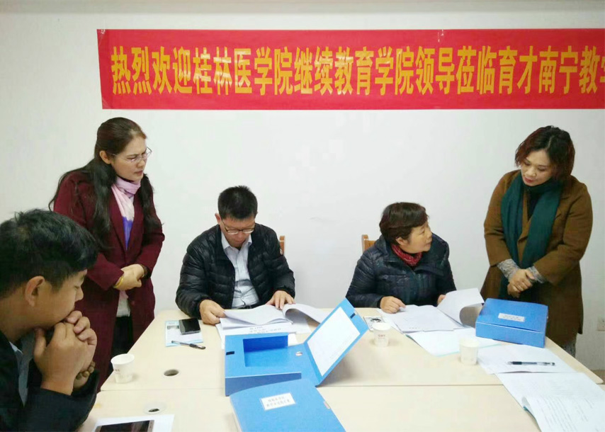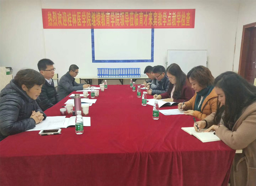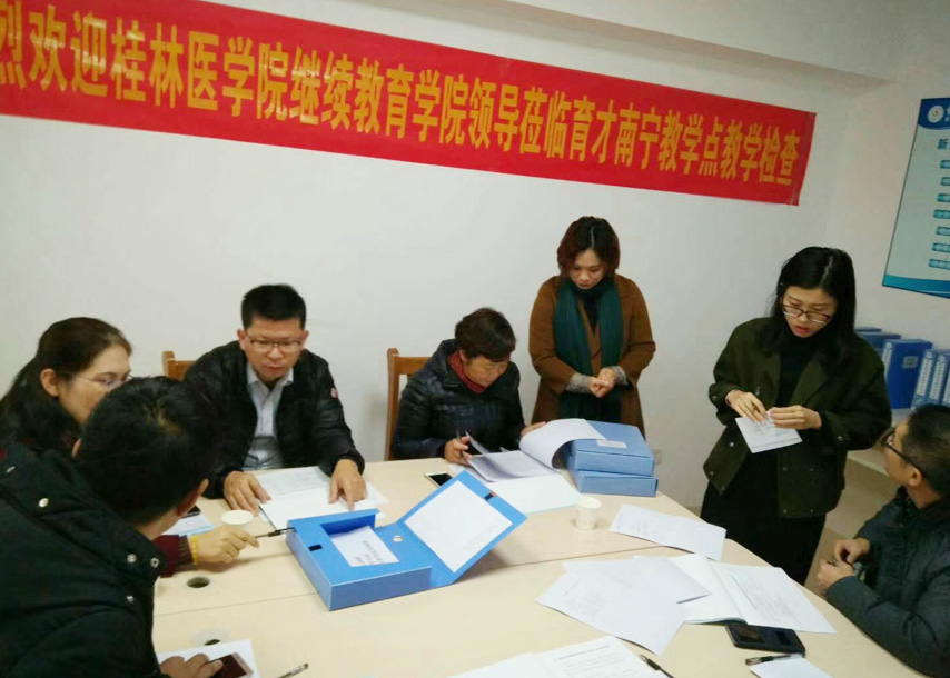 近日,桂林醫(yī)學(xué)院繼續(xù)教育學(xué)院院長高東、副院長何冰、辦公室主任、招生辦主任呂東南到育才南寧、來賓教學(xué)點(diǎn)進(jìn)行教學(xué)檢查,育才總部分管教學(xué)的常務(wù)副校長李彩梅、醫(yī)學(xué)部教學(xué)副校長韋彥清陪同檢查并作匯報。