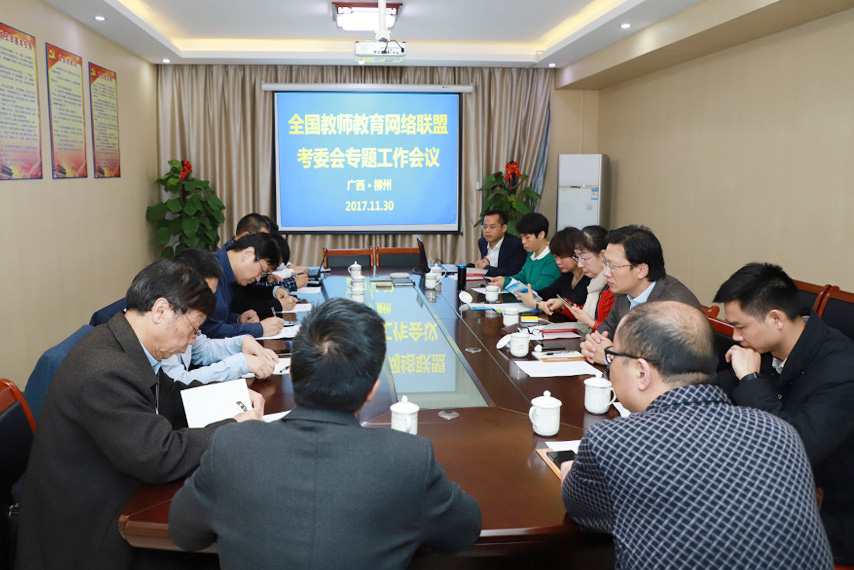 11月30日,全國教師教育網(wǎng)絡(luò)聯(lián)盟入學(xué)聯(lián)考專題工作會議在育才柳州總部勝利召開,來自教育部6所直屬的北京師范大學(xué)、華東師范大學(xué)、華中師范大學(xué)、東北師范大學(xué)、陜西師范大學(xué)、西南大學(xué)以及華南師范大學(xué)的領(lǐng)導(dǎo)老師、西南大學(xué)育才校外學(xué)習(xí)中心負(fù)責(zé)人蔣華老師參加了會議,會議由華東師范大學(xué)開放教育學(xué)院副院長沈維宇主持。