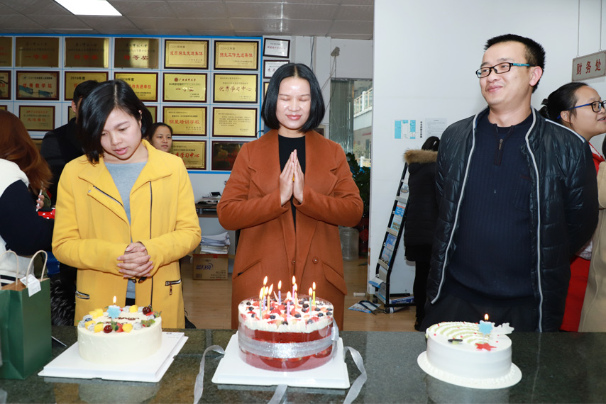 “祝你生日快樂,祝你生日快樂”12月11日下午,廣西育才教育為柳州總部和柳州分校29名教職員工舉辦了集體生日會(huì),