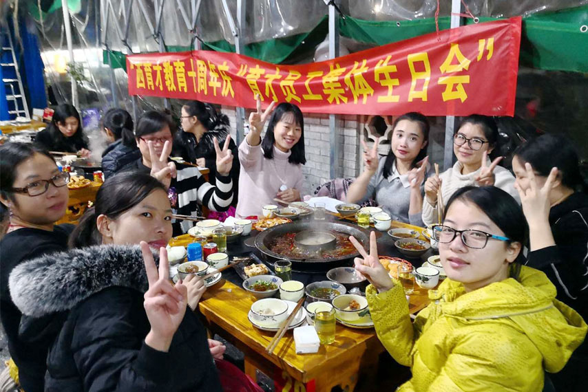 “誠信做事,創(chuàng)優(yōu)質(zhì)服務(wù);誠心做人,辦良心教育”是育才教育的服務(wù)理念。為弘揚(yáng)公司文化,讓職工感受到育才教育大家庭的溫暖,對(duì)職工長期以來的辛勤工作給予肯定和感謝,表達(dá)公司對(duì)員工的點(diǎn)滴關(guān)懷,公司每個(gè)季度都會(huì)為員工舉辦集體生日會(huì),當(dāng)季度的壽星們同各部門人員聚齊在一起,大家其樂融融,幸福縈繞其中。