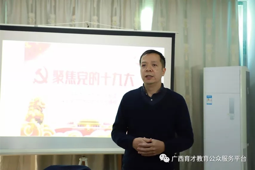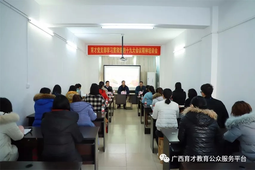 12月19日,柳州市育才教育培訓(xùn)中心黨支部學(xué)習(xí)貫徹黨的十九大會議精神培訓(xùn)會在育才柳州總部412多媒體教室舉行,培訓(xùn)會由柳州市委組織部社會組織科陸軍科長主講,柳州市魚峰區(qū)組織部副部長、兩新組織黨工委書記李群生參加培訓(xùn)會并作講話,培訓(xùn)會由育才蔣華書記主持。