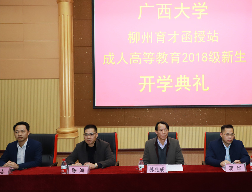 1月7日上午,廣西大學(xué)柳州育才函授站成人高等教育2018級(jí)新生開(kāi)學(xué)典禮在柳州總部順利舉行。廣西大學(xué)繼續(xù)教育學(xué)院院長(zhǎng)蘇兆成、廣西大學(xué)繼續(xù)教育學(xué)院副院長(zhǎng)陳海、廣西育才教育黨支部書(shū)記、函授站站長(zhǎng)蔣華老師、育才教育校長(zhǎng)王志以及來(lái)自柳州各行各業(yè)的160多名新生代表參加了開(kāi)學(xué)典禮。