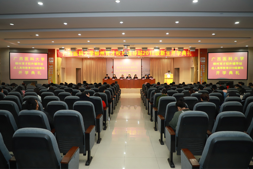 1月14日上午,廣西醫(yī)科大學柳州育才校外輔導站2018級成人高等教育新生開學典禮在柳州市人民醫(yī)院第一學術報告廳隆重舉行。廣西醫(yī)科大學繼續(xù)教育學院院長、主任醫(yī)師趙邦教授、廣西醫(yī)科大學繼續(xù)教育學院副院長劉慶委、柳州市人民醫(yī)院副院長易平、柳州市人民醫(yī)院護理部主任蔡潔、廣西育才教育黨支部書記、輔導站站長蔣華老師、輔導站副站長蔣仕榮以及來自柳州醫(yī)學行業(yè)的200多名新生代表參加了開學典禮。