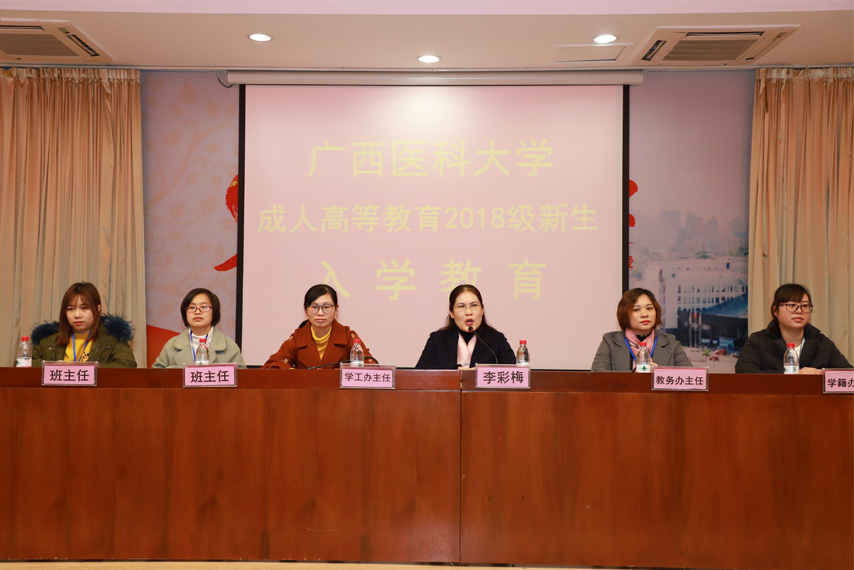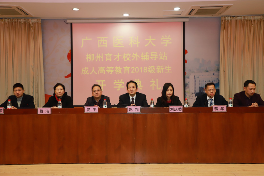 廣西醫(yī)科大學繼續(xù)教育學院院長趙邦教授代表學校向全體成教新生表示誠摯的祝賀,對大力支持廣西醫(yī)科大學成教工作的柳州市人民醫(yī)院和育才教育表示衷心的感謝。他著重介紹了學校的發(fā)展歷史、師資隊伍建設等情況以及近年來在成人高等繼續(xù)教育方面所取得的成績,他說,從今天起,廣西醫(yī)科大學將載入各位新學員們的履歷,掀開了人生嶄新的一頁,希望同學們做好四個方面:一、一定要遵循和踐行“厚德勵志,博學弘醫(yī)”的校訓,成為一名醫(yī)術精湛、醫(yī)德高尚的醫(yī)務工作者。二、要自強不息,逐夢前行,要學會規(guī)劃,把自己的人生目標定位到成才的坐標上,分解到每一天,并為之努力下去。三、嚴格要求、規(guī)范教學和考試是廣西醫(yī)科大學一貫堅持的品牌特點。從入學第一天開始,就要踏踏實實學習,擼起袖子加油干,通過三年的努力,一定會有新的提高和收獲,實現(xiàn)新的夢想。四、工作和學習是成人教育過程中較為突出的矛盾,不忘初心,轉(zhuǎn)變意識,遵守教學規(guī)定,妥善處理好工作、學習和家庭的矛盾,實現(xiàn)人生規(guī)劃的彎道超越。而柳州育才作為廣西醫(yī)科大學最好最大的社會教學點,將為各位學員提供良好的學習基礎,同時還可以借助柳州最好的醫(yī)院人民醫(yī)院的教學資源,更好地幫助大家完成學業(yè)。
