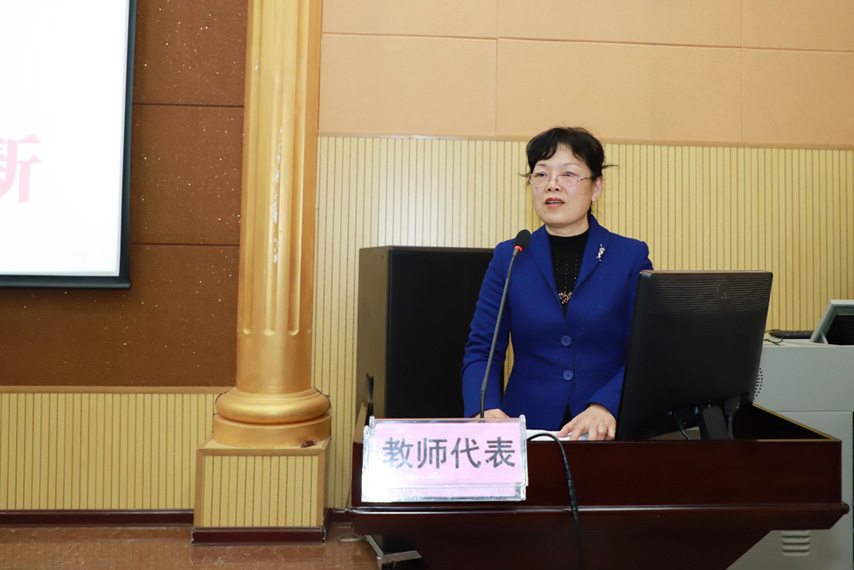 教師代表潘漫遠進行發(fā)言,她表示要認真按照學校的教學制度和教學計劃進行教學管理,努力做好教學工作,希望同學們相互幫助,共同成長,順利地完成學習任務。