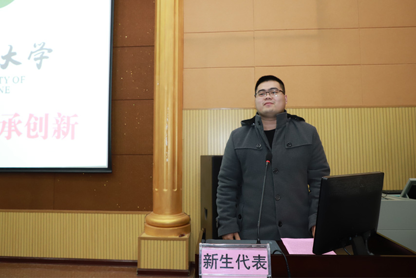 2018中藥學專業(yè)本科班的夏霖同學代表新生發(fā)言,他說,選擇報讀廣西中醫(yī)藥大學成人高等教育是人生的一個新起點,將會珍惜這難得的學習時光,和同學們一起在“弘毅自強,傳承創(chuàng)新”的校訓指引之下,踏踏實實,一步一個腳印,學出成效和成果,實現(xiàn)新的夢想和追求。