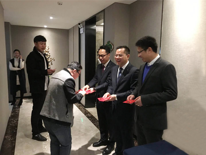 黨支部書(shū)記、董事長(zhǎng)、總經(jīng)理蔣華派發(fā)開(kāi)年紅包
