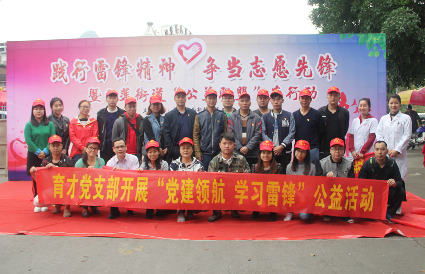 為認真貫徹落實黨的十九大精神,大力弘揚雷鋒精神,推動黨員職工積極參與學(xué)雷鋒志愿服務(wù)活動,3月15日上午,柳州市育才教育培訓(xùn)中心黨支部赴寶蓮社區(qū)開展“黨建領(lǐng)航 學(xué)習(xí)雷鋒”公益活動。此次活動由柳州市魚峰區(qū)兩新組織黨工委、白蓮街道黨工委、白蓮街道辦事處共同主辦。