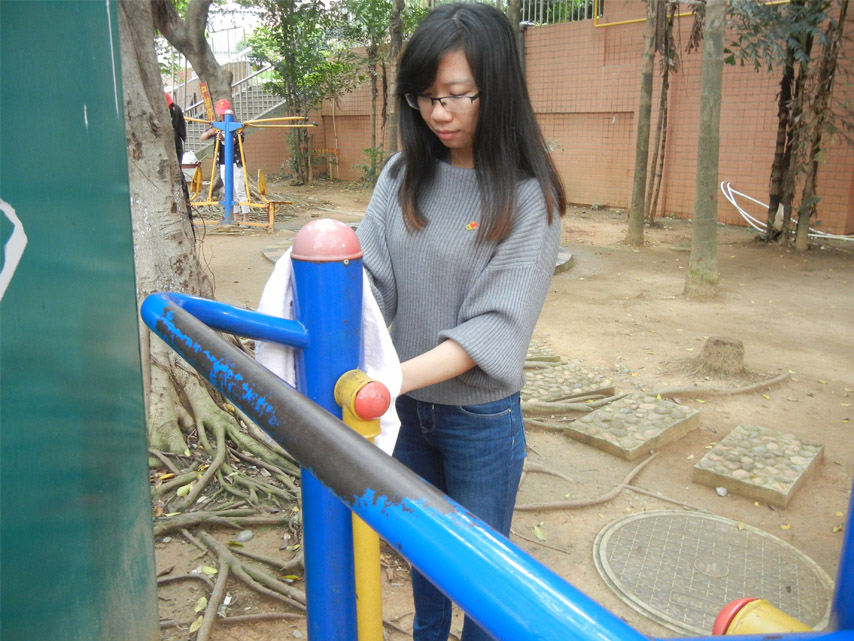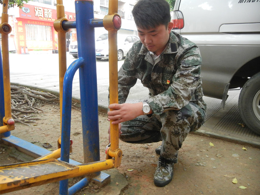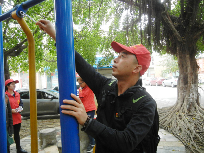 在活動中,育才黨支部黨員代表對寶蓮社區(qū)內(nèi)健身器材進行了全面的檢查,擦拭抹洗健身器材,發(fā)現(xiàn)螺絲松了、軸轉(zhuǎn)動不靈了等小毛病及時維修,杜絕居民在使用的過程中有不安全的因素發(fā)生。