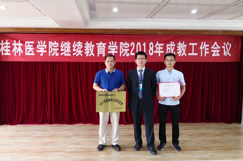 育才教育輔導(dǎo)站因成績(jī)出色,榮獲了桂林醫(yī)學(xué)院“2017年度教學(xué)點(diǎn)評(píng)估優(yōu)秀”等次,李彩梅、韋彥清、韋秋燕、李煥坤、覃慧蘭等5位老師榮獲“優(yōu)秀管理工作者”。輔導(dǎo)站負(fù)責(zé)人蔣華在會(huì)上作為優(yōu)秀代表進(jìn)行了經(jīng)驗(yàn)分享。