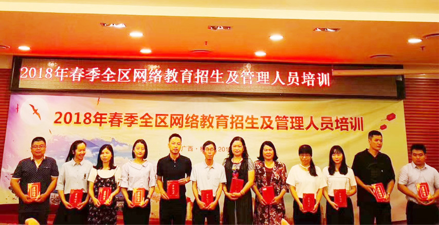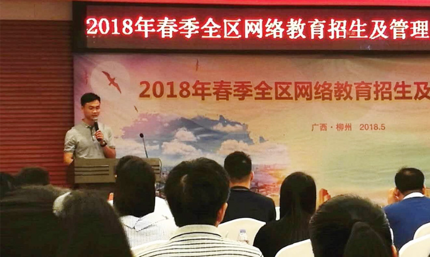 廣西電大網(wǎng)絡(luò)教育學(xué)院副院長唐建軍對2018年總結(jié)網(wǎng)絡(luò)教育招生進(jìn)行了總結(jié),講述了網(wǎng)教市場的發(fā)展趨勢及未來展望,分析了2018年春季的網(wǎng)絡(luò)教育的招生情況,對在場學(xué)習(xí)中心管理人員進(jìn)行了工作布置:一是要加強業(yè)務(wù)培訓(xùn),提高服務(wù)水平;二是要加大檢查力度,提高風(fēng)險意識。