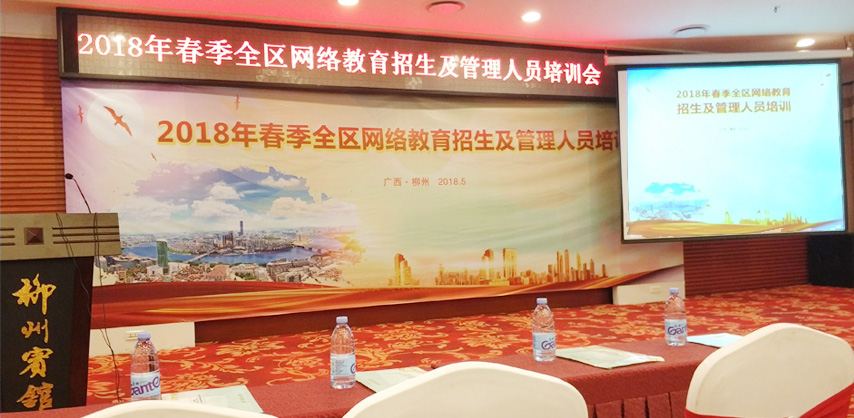 5月8日,2018年春季全區(qū)網(wǎng)絡(luò)教育招生及管理人員培訓(xùn)會在柳州召開,廣西廣播電視大學(xué)副校長董塔建、西南大學(xué)網(wǎng)絡(luò)與繼續(xù)教育學(xué)院副院長鄭是、廣西廣播電視大學(xué)網(wǎng)絡(luò)教育學(xué)院院長陶群、副院長唐建軍、部分市電大校領(lǐng)導(dǎo)、學(xué)習(xí)中心負(fù)責(zé)人等70多家單位150余名老師參加了會議,會議由廣西電大網(wǎng)絡(luò)教育學(xué)院院長陶群主持。育才負(fù)責(zé)人蔣華、副校長王志參加了會議。