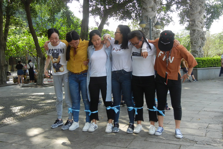 5月14日,育才柳州總部教學(xué)中心團(tuán)隊(duì)在蟠龍山公園舉行戶外拓展活動(dòng),整個(gè)活動(dòng)設(shè)計(jì)了三個(gè)游戲環(huán)節(jié),包括夾球走、六人五足、“瘋狂”的設(shè)計(jì)。其中“瘋狂”的設(shè)計(jì)深受大家的歡迎,游戲規(guī)則是團(tuán)隊(duì)成員分成若干組,每組6人,提前準(zhǔn)備好26個(gè)字母中的兩個(gè)字母,然后在短時(shí)間內(nèi)擺出字母造型。