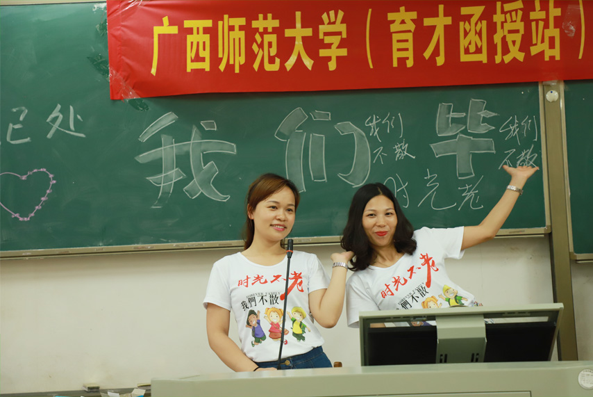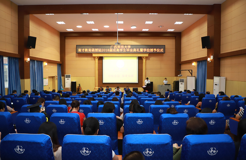 育才函授站負(fù)責(zé)人蔣華老師向2018屆畢業(yè)生表示誠(chéng)摯的祝賀,對(duì)何創(chuàng)雄副院長(zhǎng)的到來(lái)表示熱烈歡迎,向廣西師范大學(xué)送教上門表示衷心的感謝,他介紹了本屆畢業(yè)生的情況,希望畢業(yè)生學(xué)會(huì)感恩,不斷學(xué)習(xí),報(bào)效社會(huì),同時(shí)關(guān)心母校的發(fā)展,最后提醒畢業(yè)生妥善保管畢業(yè)證和畢業(yè)生檔案。