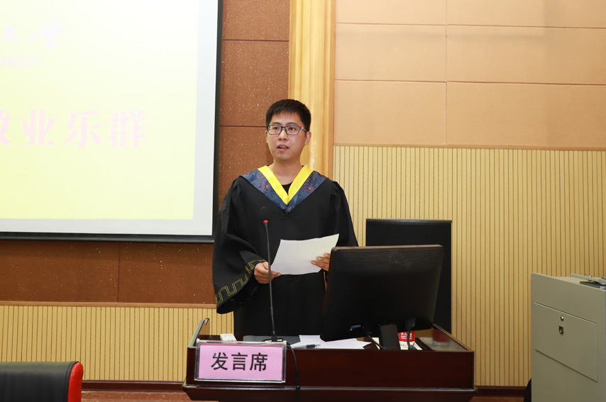 食品科學(xué)與工程專業(yè)本科班的甘行園同學(xué)代表畢業(yè)生上臺(tái)發(fā)言,他說(shuō),本科畢業(yè)圓了自己學(xué)歷提升的夢(mèng)想,同時(shí)也是一個(gè)新的起點(diǎn),今后,要和同學(xué)們一起在各自的領(lǐng)域發(fā)揮才干,不負(fù)歲月,為母校增輝添彩。