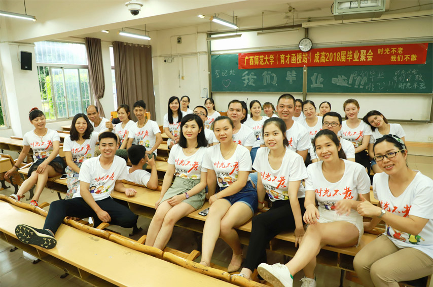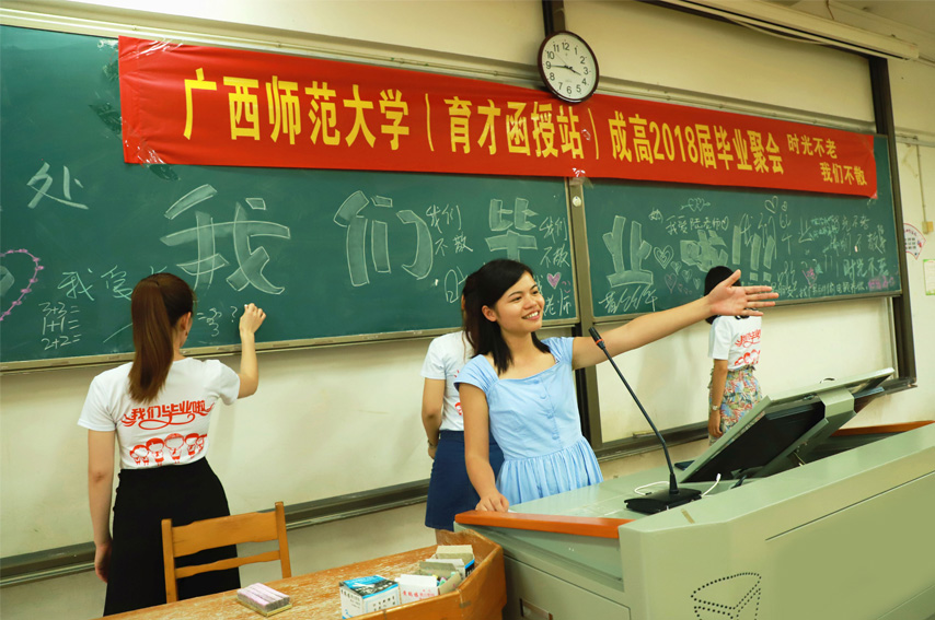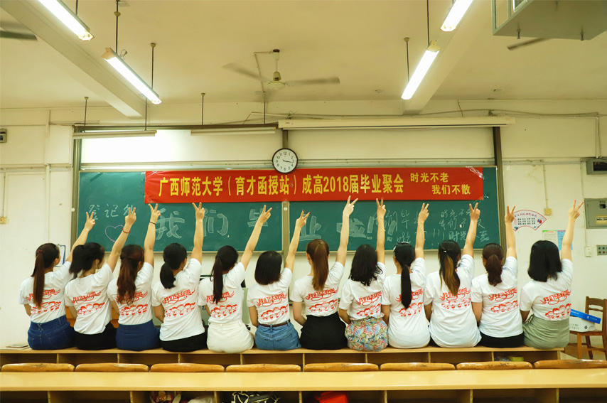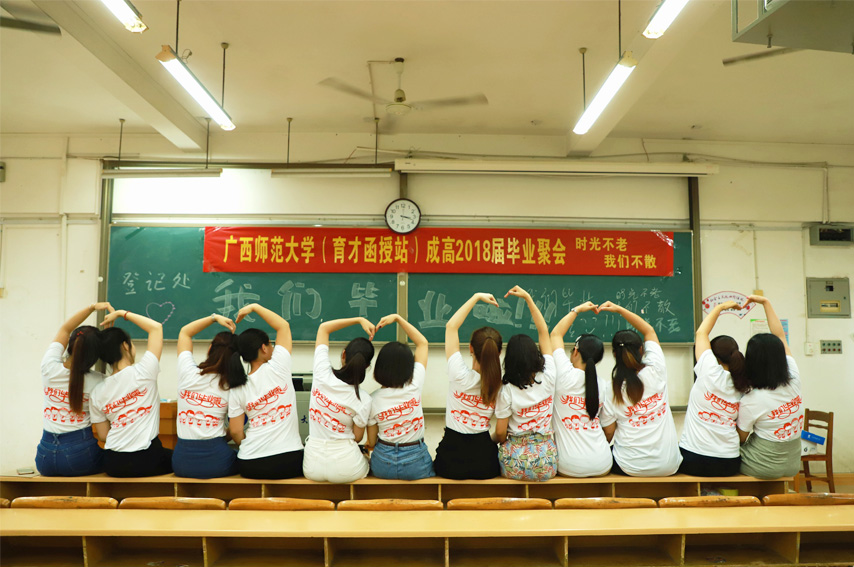 畢業(yè)典禮在奮發(fā)、圖強(qiáng)的廣西師范大學(xué)校歌《育才之歌》中圓滿結(jié)束。典禮結(jié)束之后,2018屆成高畢業(yè)生拍攝了集體照,并開展了畢業(yè)季創(chuàng)意留影和聚會(huì)活動(dòng),以多姿多彩的方式歡慶和紀(jì)念這一個(gè)特殊的時(shí)刻。