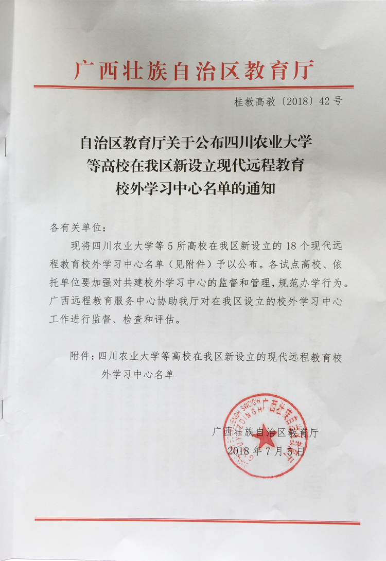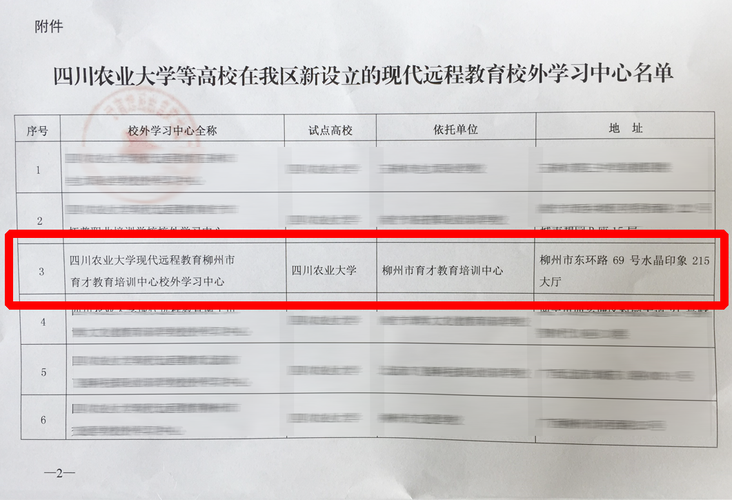 近日,廣西教育廳公布了四川農(nóng)業(yè)大學(xué)等高校在廣西新設(shè)立現(xiàn)代遠(yuǎn)程教育校外學(xué)習(xí)中心名單的通知,育才教育因辦學(xué)行為規(guī)范,新增備案成為四川農(nóng)業(yè)大學(xué)遠(yuǎn)程教育柳州市育才教育培訓(xùn)中心校外學(xué)習(xí)中心。