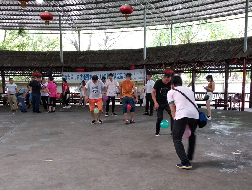 青春無(wú)悔,情誼無(wú)限。7月8日,2018年春學(xué)期廣西大學(xué)師生聯(lián)誼活動(dòng)在柳州萬(wàn)聚山莊順利開(kāi)展,70余名師生參加了活動(dòng)。本次活動(dòng)由廣西大學(xué)育才教育函授站組織,活動(dòng)內(nèi)容包括歡樂(lè)聚餐、趣味游戲、聯(lián)誼交流等環(huán)節(jié)。趣味游戲環(huán)節(jié)設(shè)置了丑小鴨賽跑、接力脫衣穿衣、心有靈犀猜成語(yǔ)、九人十足游戲,其中各個(gè)游戲的懲罰環(huán)節(jié)成為現(xiàn)場(chǎng)活動(dòng)的亮點(diǎn)和笑點(diǎn)。師生齊上陣,既有既當(dāng)裁判又當(dāng)運(yùn)動(dòng)員“欲玩還羞”的老師,又有多才多藝的學(xué)生主持人,還有足以“走紅抖音”的“戲精上身”搞笑片刻。在這個(gè)火熱的盛夏,在這個(gè)春學(xué)期期末的課余時(shí)間里,青春寫(xiě)在同學(xué)們的臉上,展現(xiàn)在師生之情的良好氛圍中,一起悅享生活,攜手進(jìn)步。