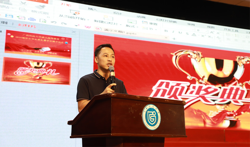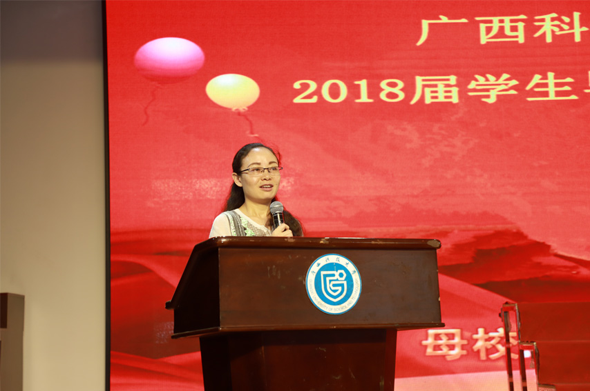 韋鴻鵬院長作了熱情洋溢的致辭,他代表學(xué)校向順利完成學(xué)業(yè)的畢業(yè)生們表示熱烈的祝賀,他說,有五個忘不了:忘不了學(xué)生晚上下班之后冒著大雨來學(xué)校上課的情景;忘不了同學(xué)們來報道排隊(duì)的時候只見龍頭不見龍尾的場面;忘不了期末考試時堵得水泄不通的學(xué)校主要干道,一排排汽車和電動車成為一道特別的風(fēng)景;忘不了有些同學(xué)帶著孩子、孕婦同學(xué)挺著大肚子來上課和考試的感人畫面;忘不了有些同學(xué)在畢業(yè)的同時也收獲了結(jié)婚證,學(xué)業(yè)愛情雙豐收。同學(xué)們克服學(xué)工矛盾堅(jiān)持完成學(xué)業(yè)不容易,這注定是一個難忘和收獲的季節(jié),廣西科技大學(xué)已成為你們的母校,成為你們刻骨銘心和忘不了的地方。同時向同學(xué)提出兩點(diǎn)希望和囑托:希望同學(xué)們初心不改、始終保持積極向上、奮發(fā)有為的精神狀態(tài),勝不驕敗不餒,不斷學(xué)習(xí)和吸收新的知識,優(yōu)化知識結(jié)構(gòu),與時俱進(jìn),歡迎同學(xué)們回到母校充電提升自己;希望同學(xué)們適應(yīng)新時代,做一個敢于擔(dān)當(dāng)、敢于負(fù)責(zé)、敢于作為的人。