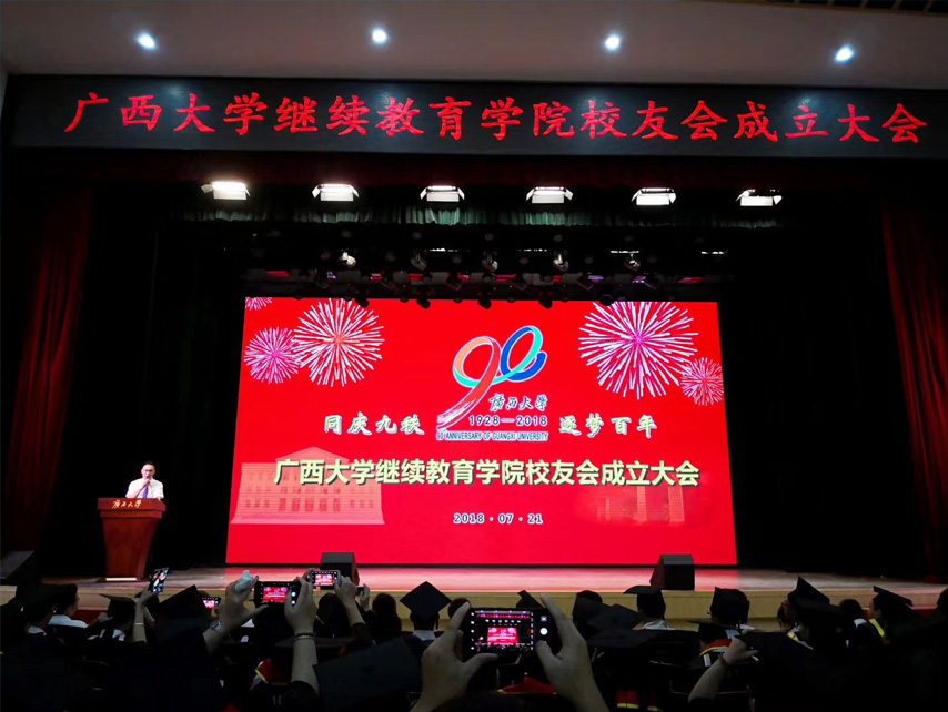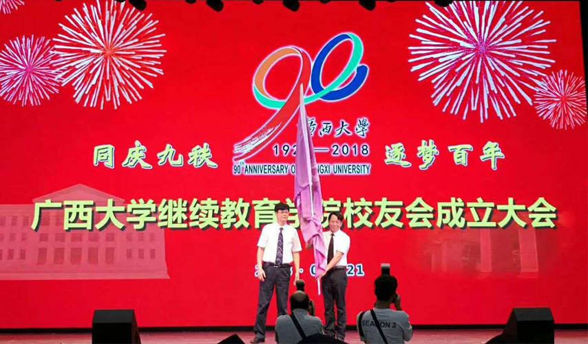 會議由陳海副院長主持。學(xué)校校友會總會負責(zé)人致辭和宣讀校友總會關(guān)于繼續(xù)教育學(xué)院校友分會成立的批復(fù),并由學(xué)校校友會總會向繼續(xù)教育學(xué)院校友分會授予會旗。現(xiàn)場的各位校友理事和畢業(yè)生代表一起慶賀廣西大學(xué)繼續(xù)教育學(xué)院校友會的成立。繼續(xù)教育學(xué)院校友會會長、繼續(xù)教育學(xué)院院長蘇兆成在會上致辭,他說,校友會的成立,加強了全國各地校友和母校之間的聯(lián)系,最大程度地凝聚了各地校友的交流?;仡櫪^續(xù)教育學(xué)院發(fā)展歷程,母校今天的發(fā)展成就是在每一位校友的共同努力下取得,母校的光榮是由每一個校友的榮譽匯聚而成。母校的未來更需要我們每一位西大人繼續(xù)持之以恒,不懈奮斗。能同為西大的校友是我們一生中彌足珍貴的緣分,希望我們能共同珍惜珍愛這份情誼,一起呵護建設(shè)校友會這個溫馨的大家庭。2018年年12月10日是學(xué)校成立90周年華誕,屆時學(xué)校將舉行90周年慶典,蘇兆成院長真誠的希望校友們回家看看。