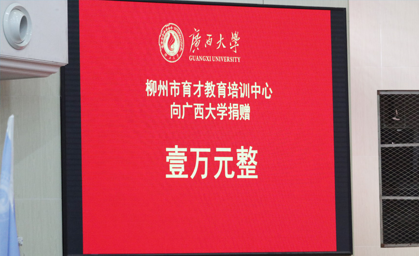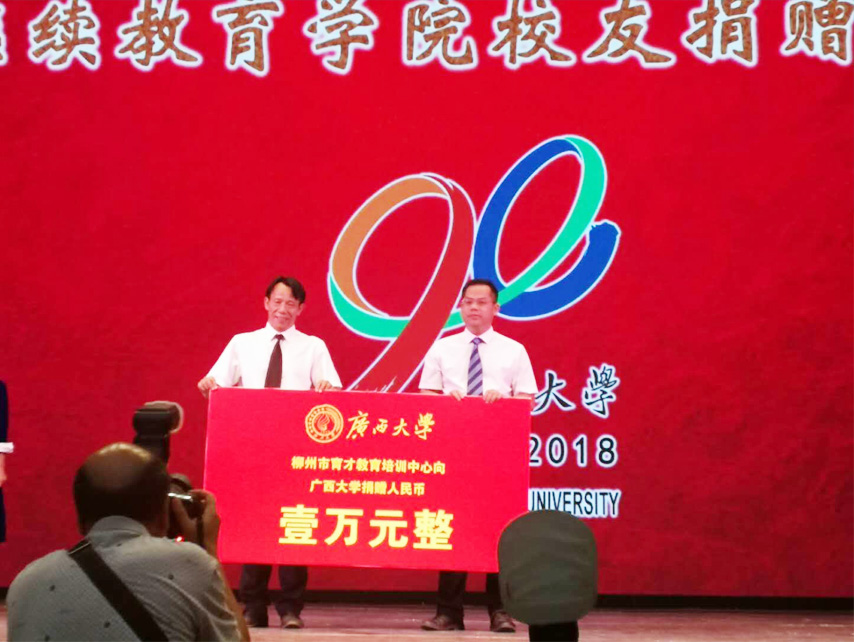 在校友捐贈儀式上,廣西大學(xué)繼續(xù)教育學(xué)院校友會第一屆理事會理事、柳州市育才教育培訓(xùn)中心負責(zé)人蔣華代表中心向廣西大學(xué)捐贈10000元,并祝學(xué)校辦得越來越好。繼續(xù)教育學(xué)院校友會會長、繼續(xù)教育學(xué)院院長蘇兆成蘇兆成會長向蔣華頒發(fā)捐贈證書。